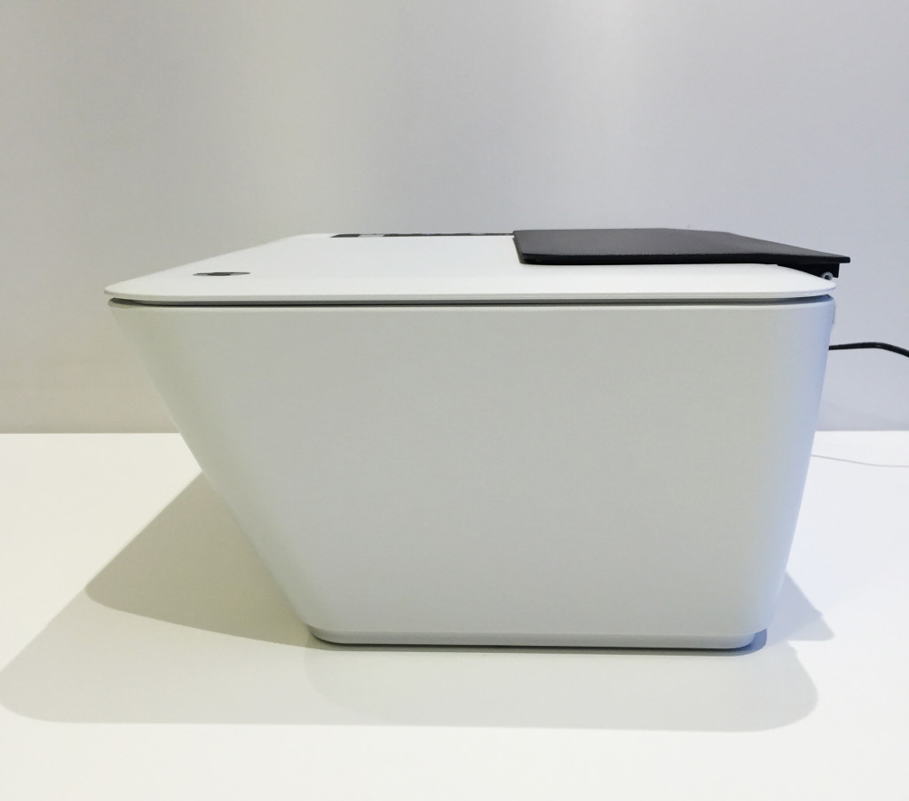 The printer dimensions are a nice, concise 42.5 x 55.2 x 25.2cm at its widest point and is narrower at the base. It weighs an impressively light 3.6kg and is available in either white or silver.
