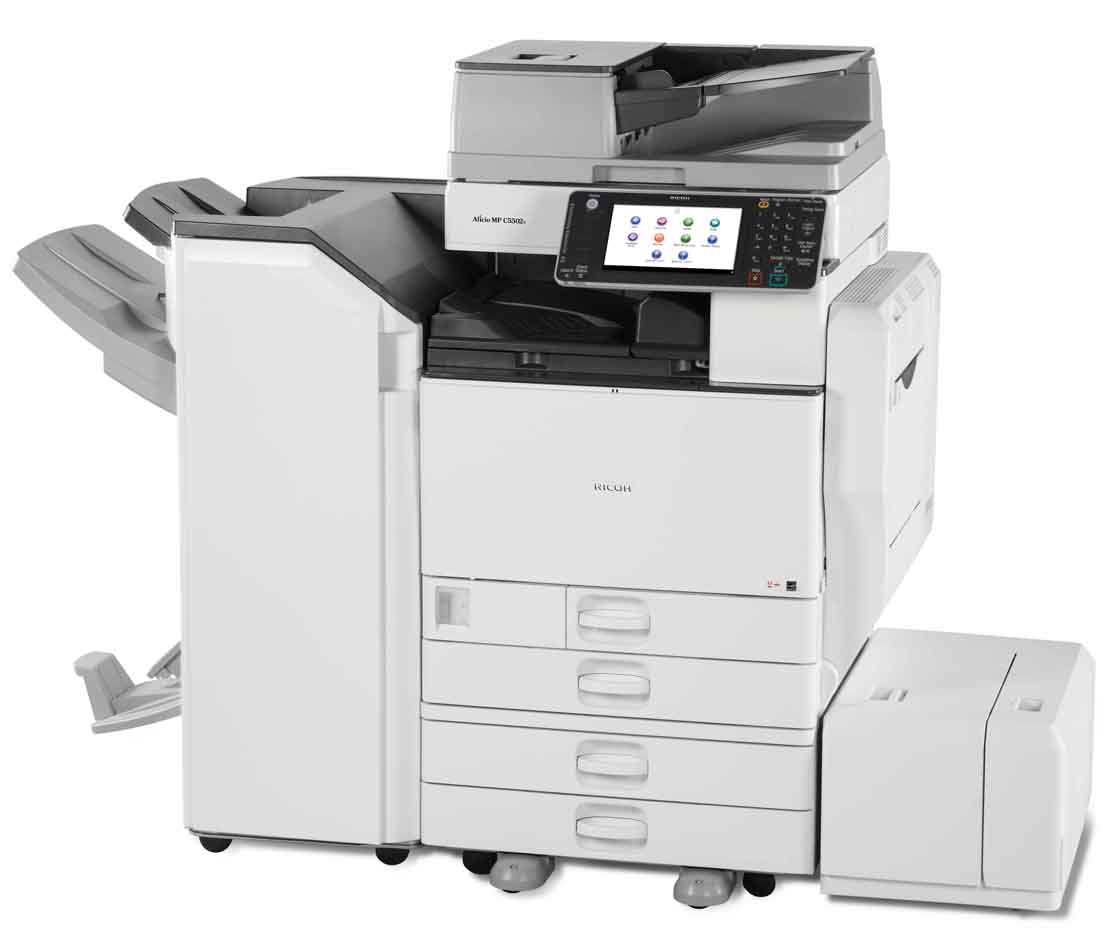 Ideal for demanding work environments, the robust Ricoh Aficio MP C5503SP colour laser printer boasts quick print and copy speeds and other excellent features from standard networking to a wide array of optional finishers. This copier is a multifunction unit that can also fax, print and scan. The Ricoh Aficio MPC5503SP colour multifunction printer can deliver a maximum print resolution of 1200 x 1200dpi.